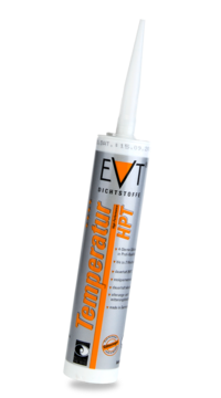 EVT Temperatur HPT reagiert mit Luftfeuchtigkeit unter Abspaltung von Essigsäure, bleibt dauerhaft bis +250°C und kurzzeitig bis +300°C elastisch, alterungs- und witterungs- und UV-beständig.